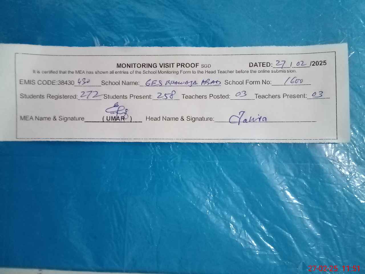 | EMIS Code: 38430430 | Name of School: GGES KHAWAJA ABAD | |||