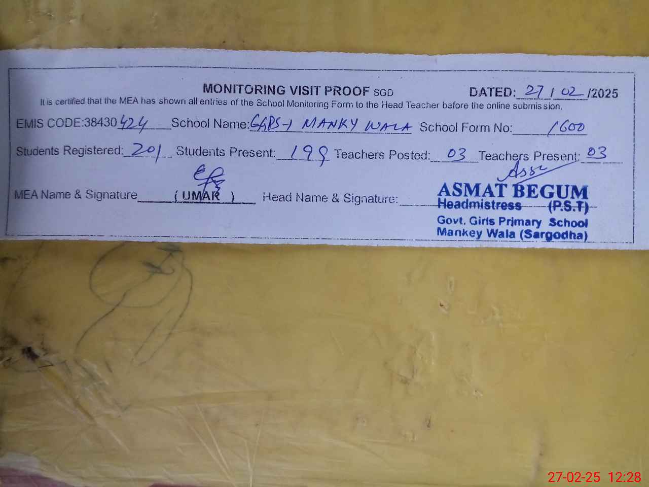| EMIS Code: 38430424 | Name of School: GGPS NO.1 MANKEY WALA | |||
