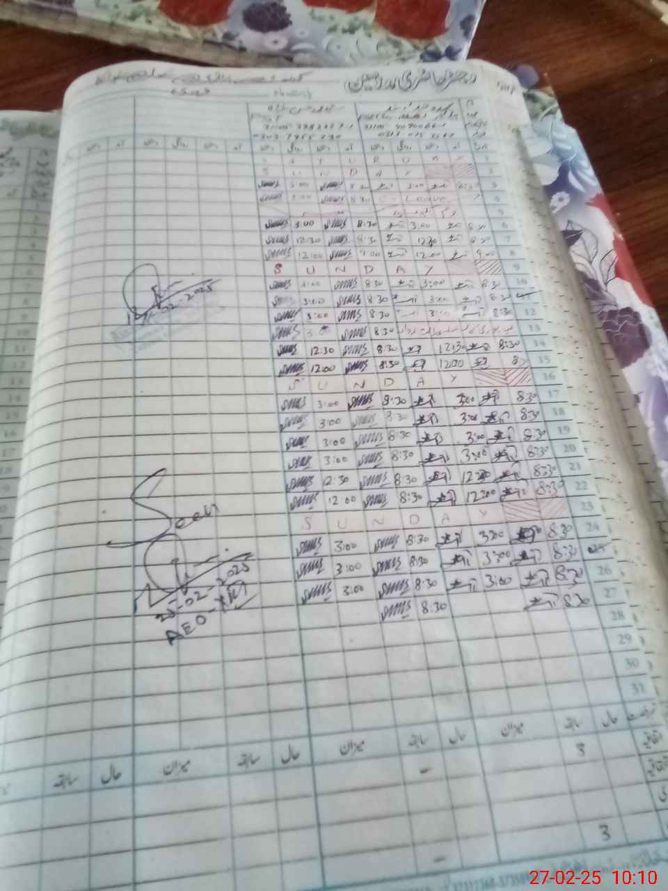 | CNIC | Full Name | Designation | R/C | Absence During Last Calender Month |