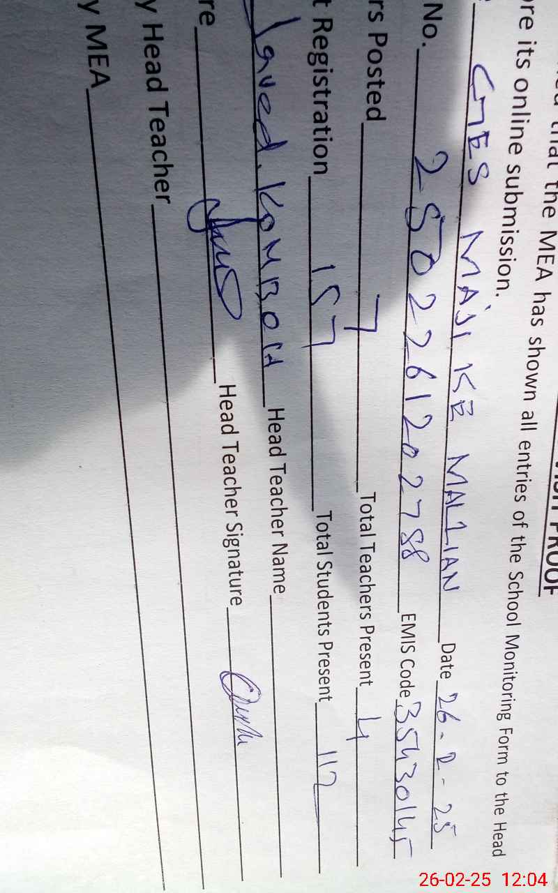 | EMIS Code: 35430145 | Name of School: GES MAJI KE MALLIAN | |||