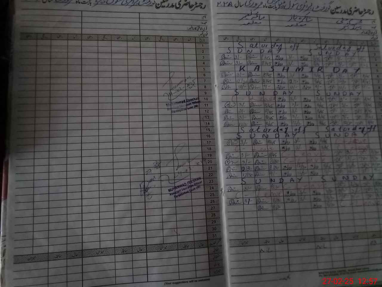 | CNIC | Full Name | Designation | R/C | Absence During Last Calender Month |