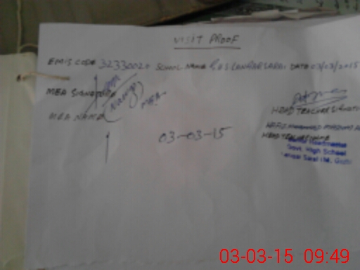| Attendance Register | Head Teacher | MEA with School | Visit Proof |
