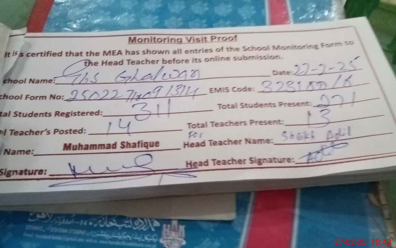 | EMIS Code: 32310016 | Name of School: GHS GHALWAN | |||