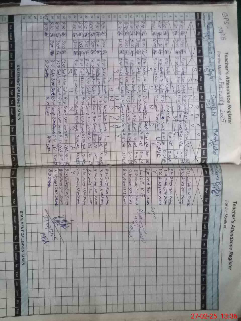 | Name: MU**** SA**** Designation: (School Headmaster's/Headmistress's) PST Phone/Cell Number: 03**** |