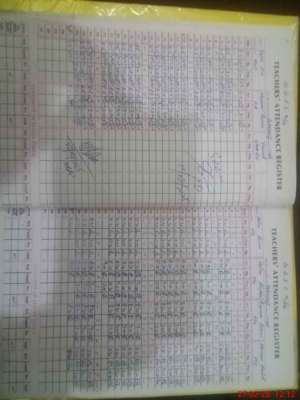 | No. of Students Present - Female | 0 | 0 | 23 | 20 | 20 | 21 | 25 | 22 | 21 | 14 | 12 | 178 | ||||