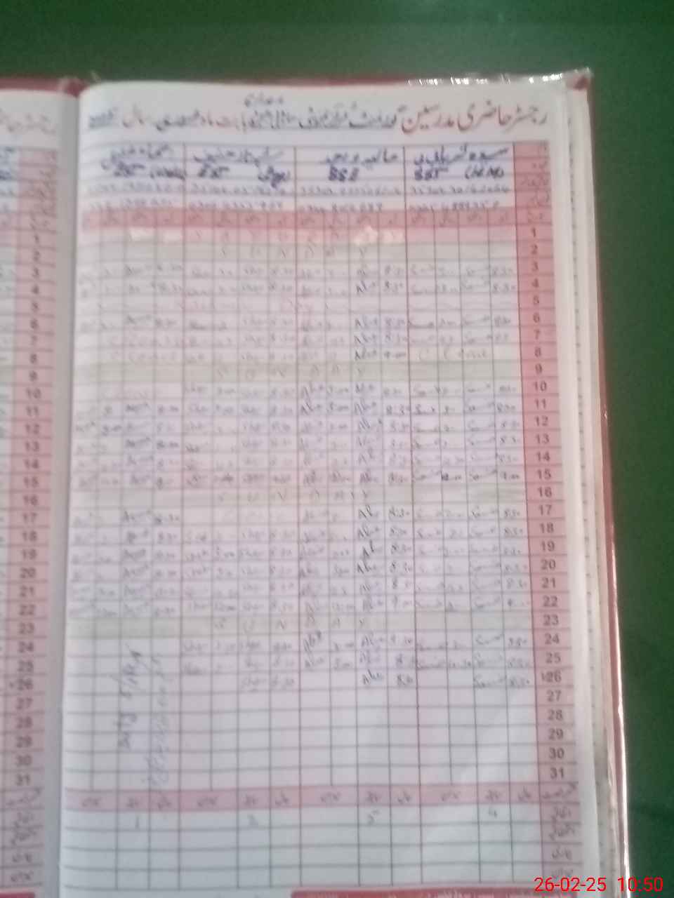 | CNIC | Full Name | Designation | R/C | Absence During Last Calender Month |