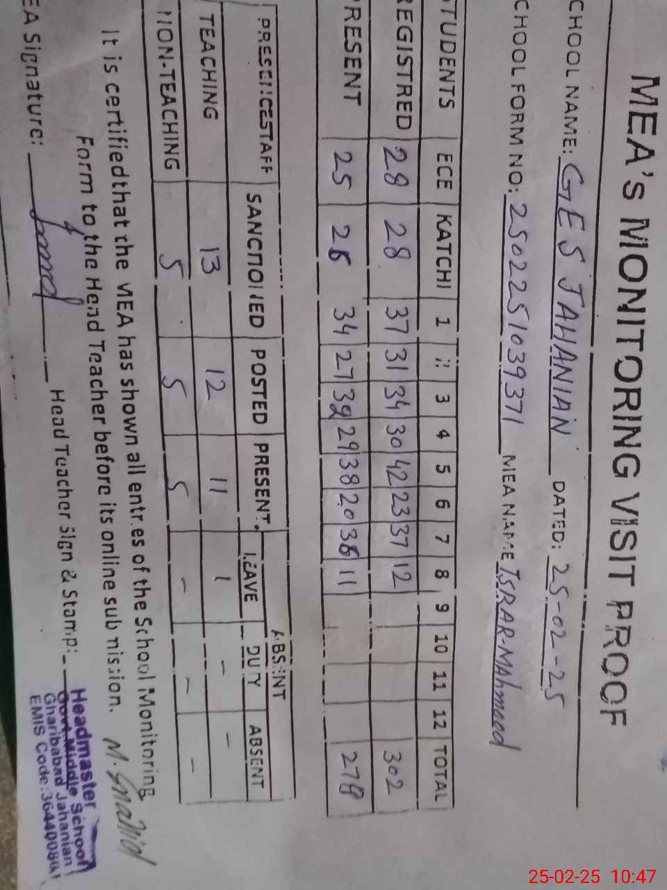 | EMIS Code: 36440080 | Name of School: GES JAHANIAN | |||