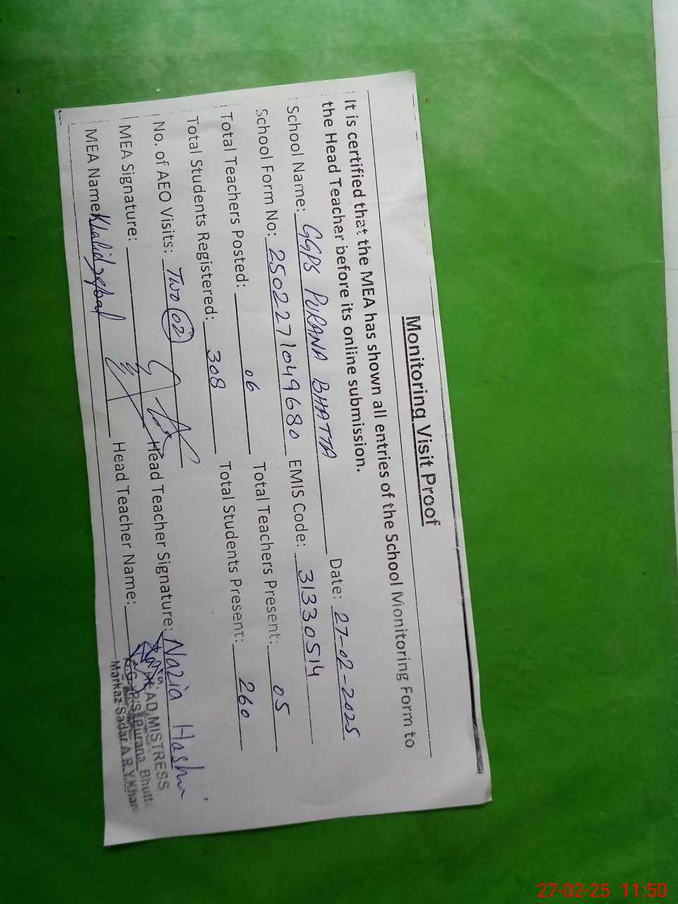 | EMIS Code: 31330514 | Name of School: GGPS PURANA BHATTA | |||