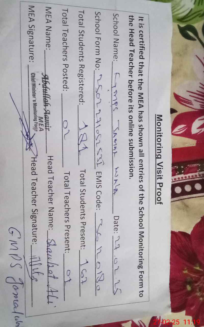 | EMIS Code: 36120180 | Name of School: GMPS JAMAL WALA SHUJABAD | |||