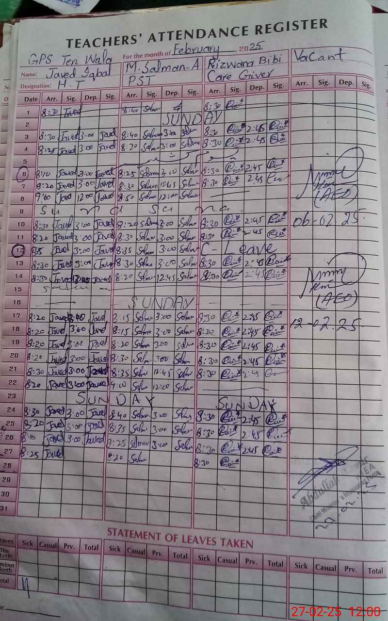 | Name: JA**** IQ**** Designation: (School Headmaster's/Headmistress's) PST/PTC/JV Phone/Cell Number: 03**** |