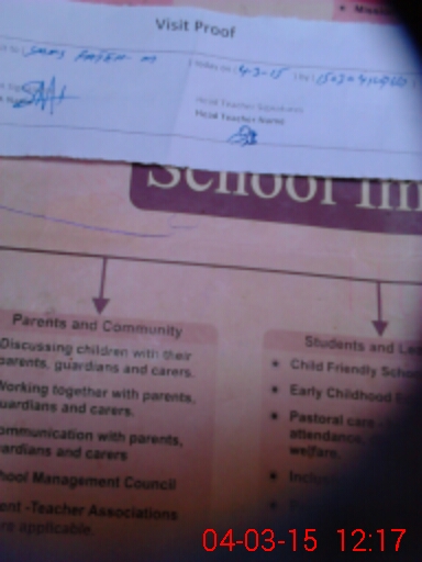 | Attendance Register | Head Teacher | MEA with School | Visit Proof |