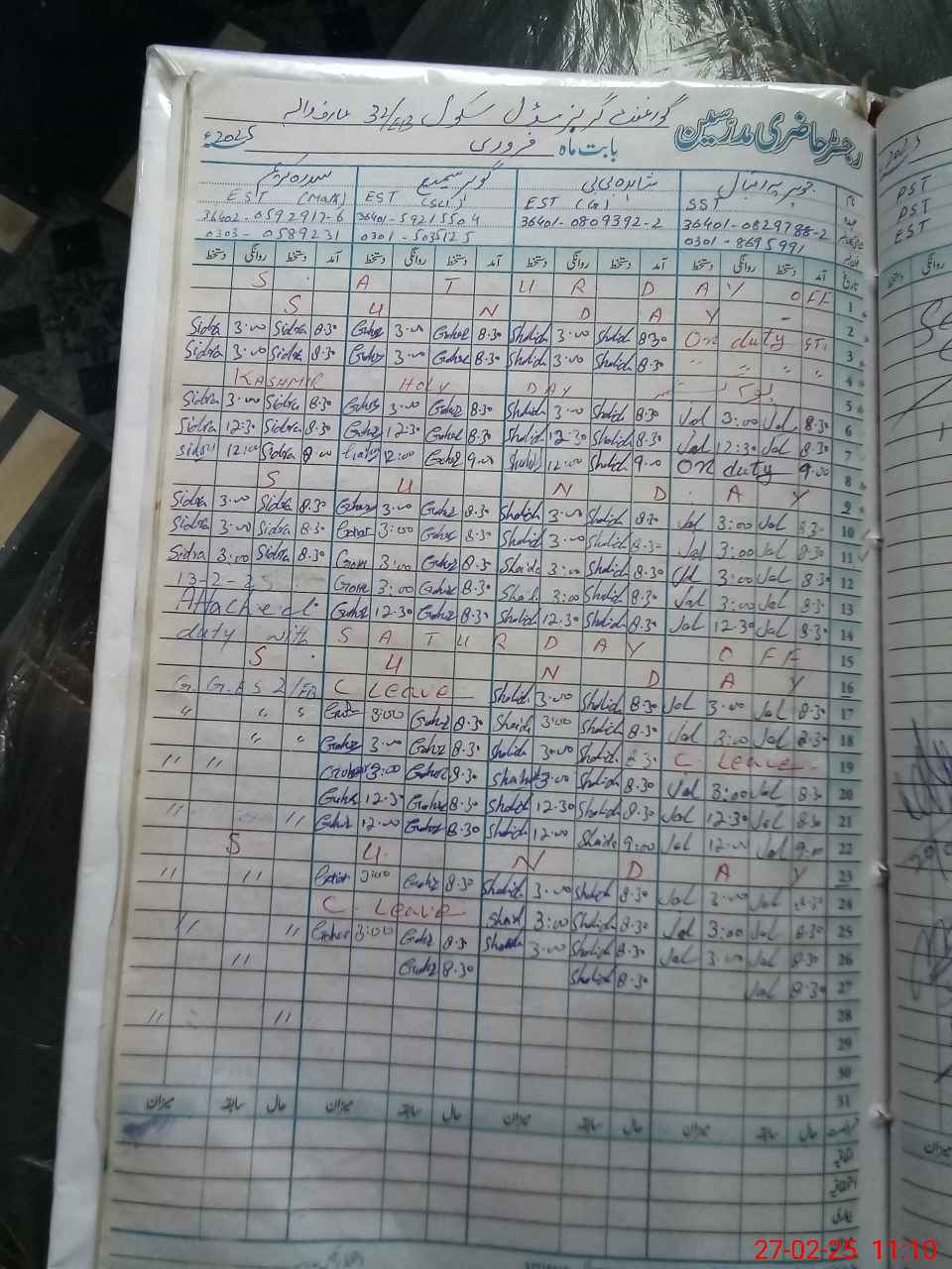 | Leave | Duty | Absent | Maternity | Medical | Ex- Pak |