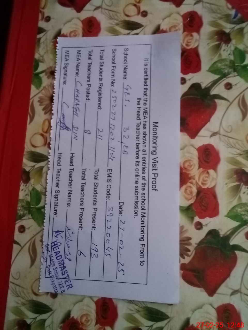 | EMIS Code: 39220045 | Name of School: GES CHAK NO. 32 / EB | |||