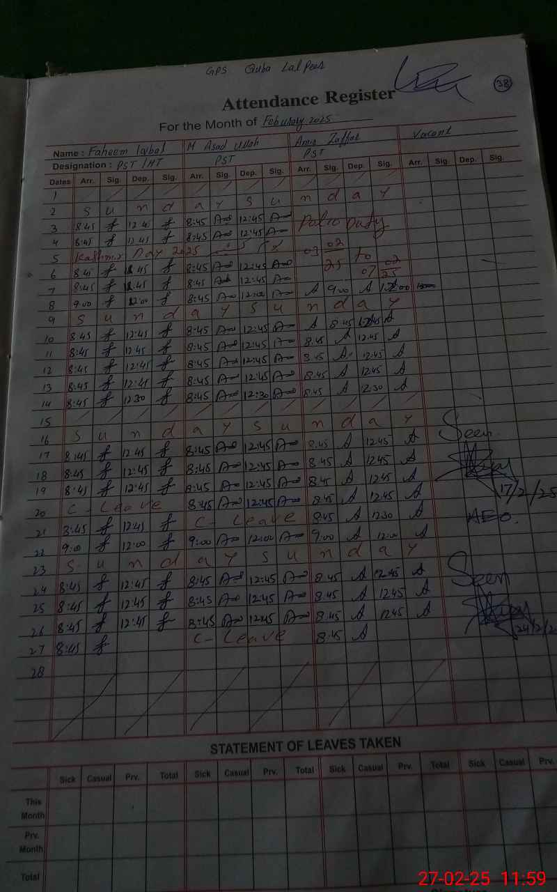 | Name: FA**** IQ**** Designation: (School Headmaster's/Headmistress's) PST Phone/Cell Number: 03**** |