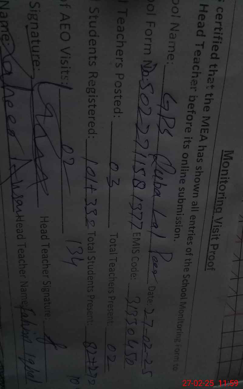 | EMIS Code: 31330450 | Name of School: GPS QUBA LAL PEER | |||