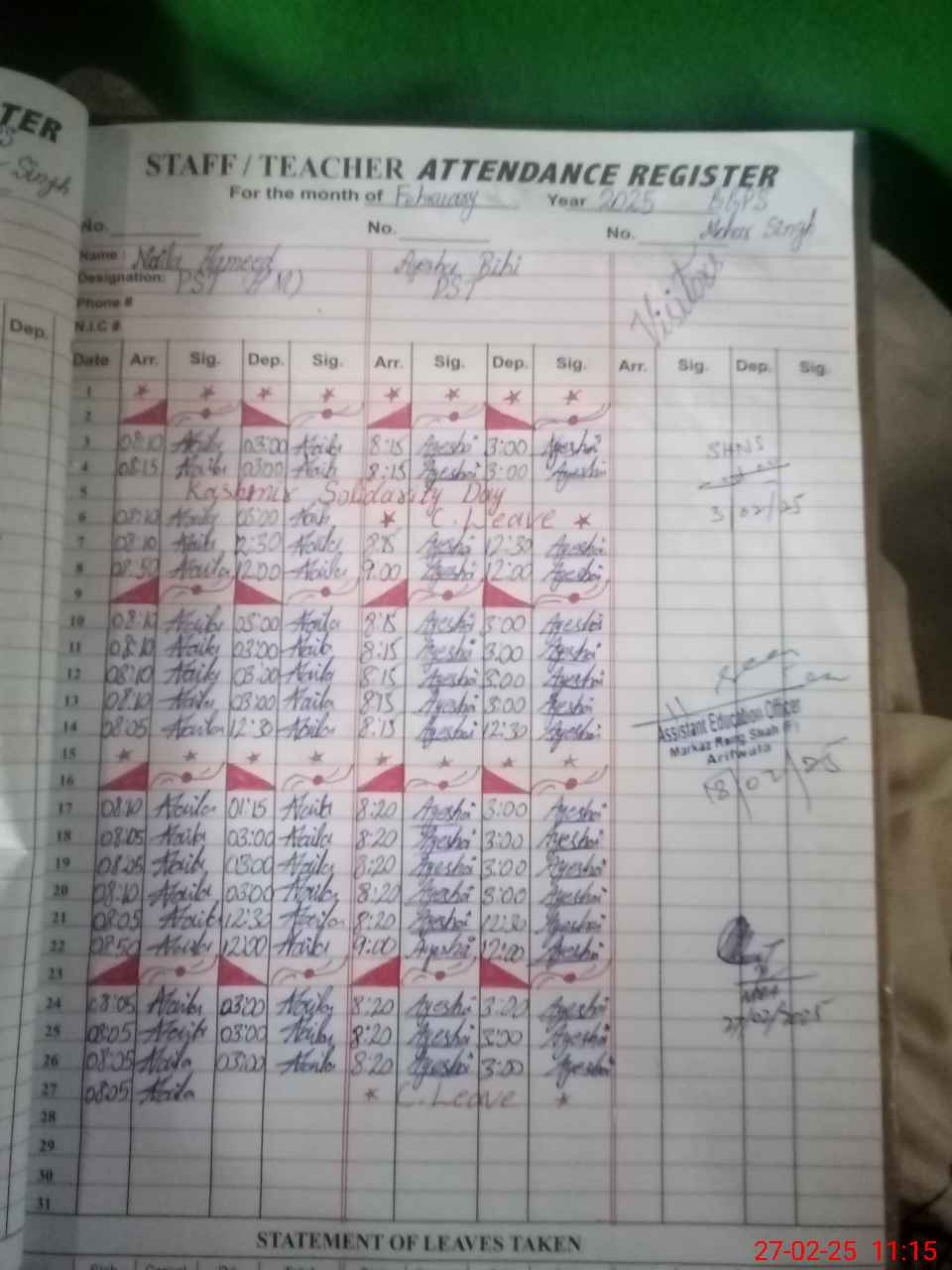 | Name: NA**** HA**** Designation: (School Headmaster's/Headmistress's) PST Phone/Cell Number: 03**** |