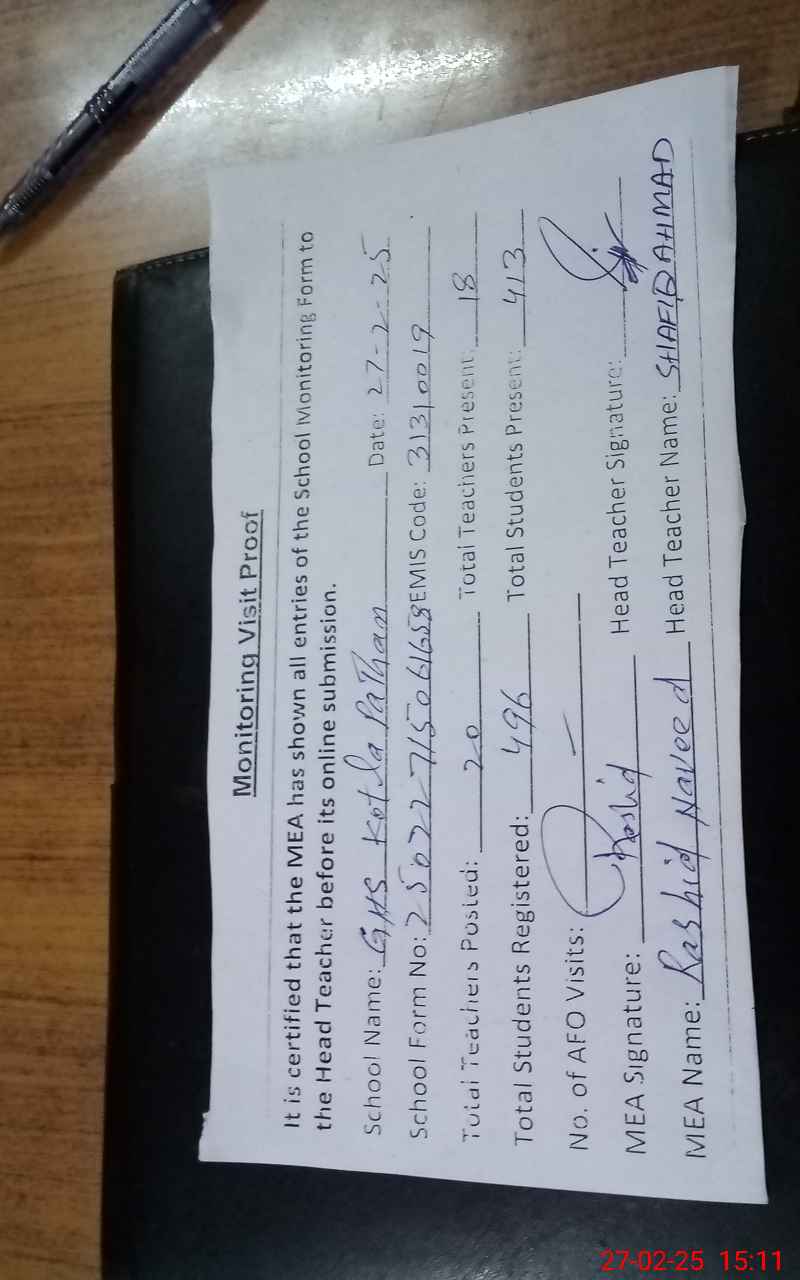 | EMIS Code: 31310019 | Name of School: GHS KOTLA PATHAN | |||