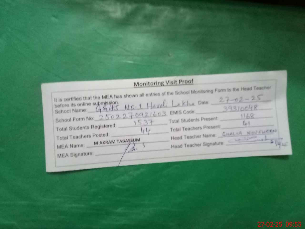 | EMIS Code: 39310048 | Name of School: GGHS NO. 1 HAVELI LAKHA MUNAWAR SHAHEED ROAD | |||