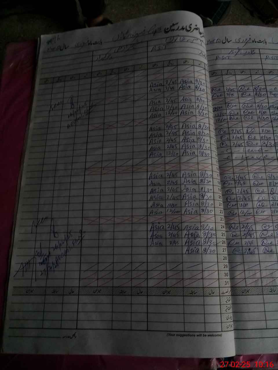 | CNIC | Full Name | Designation | R/C | Absence During Last Calender Month |