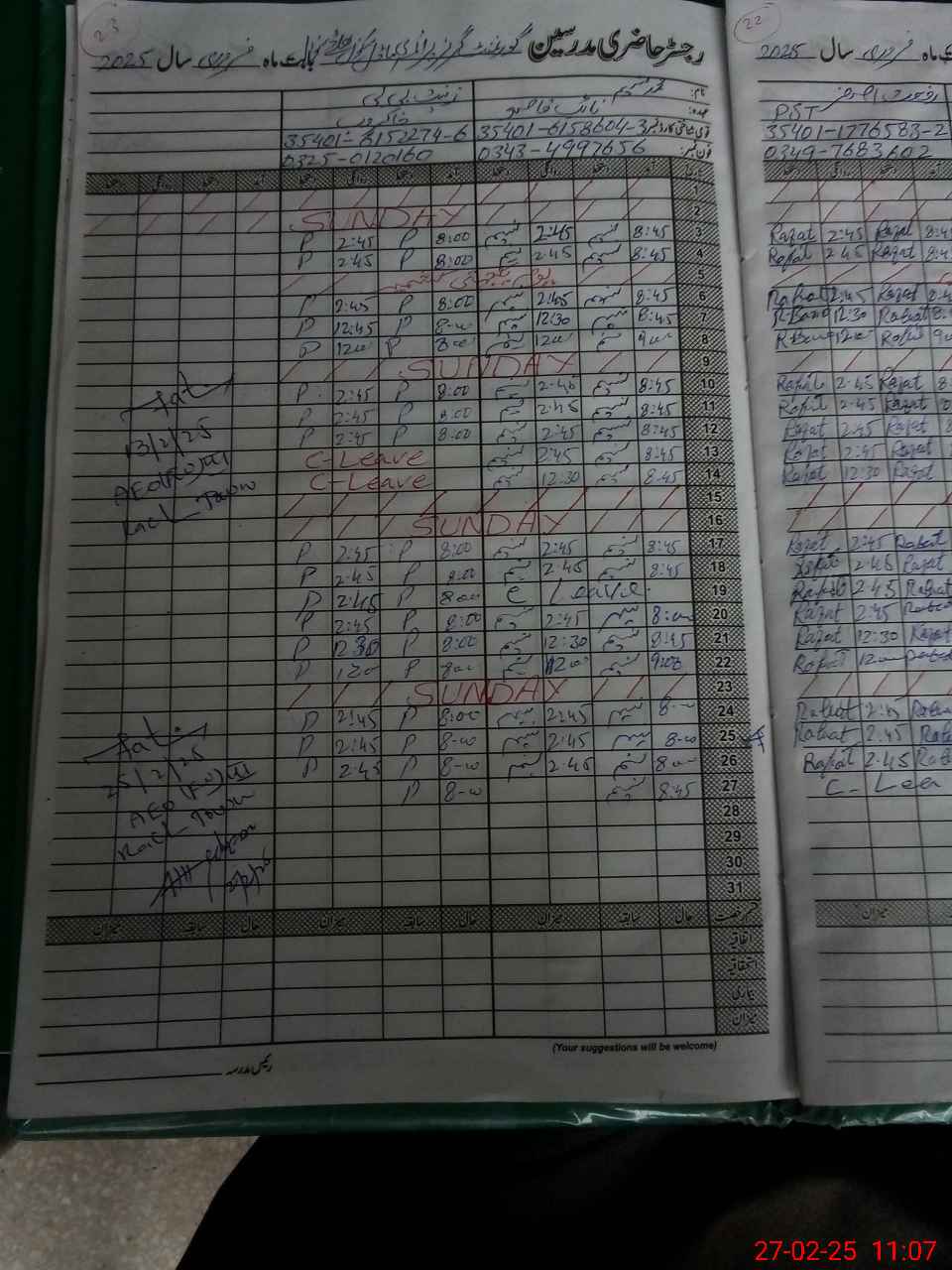 | CNIC | Full Name | Designation | R/C | Absence During Last Calender Month |