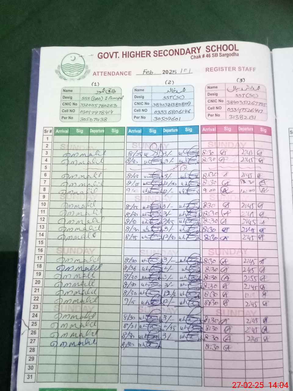 | Name: MU**** KH**** Designation: (School Headmaster's/Headmistress's) In charge HEAD SST Phone/Cell Number: 03**** |