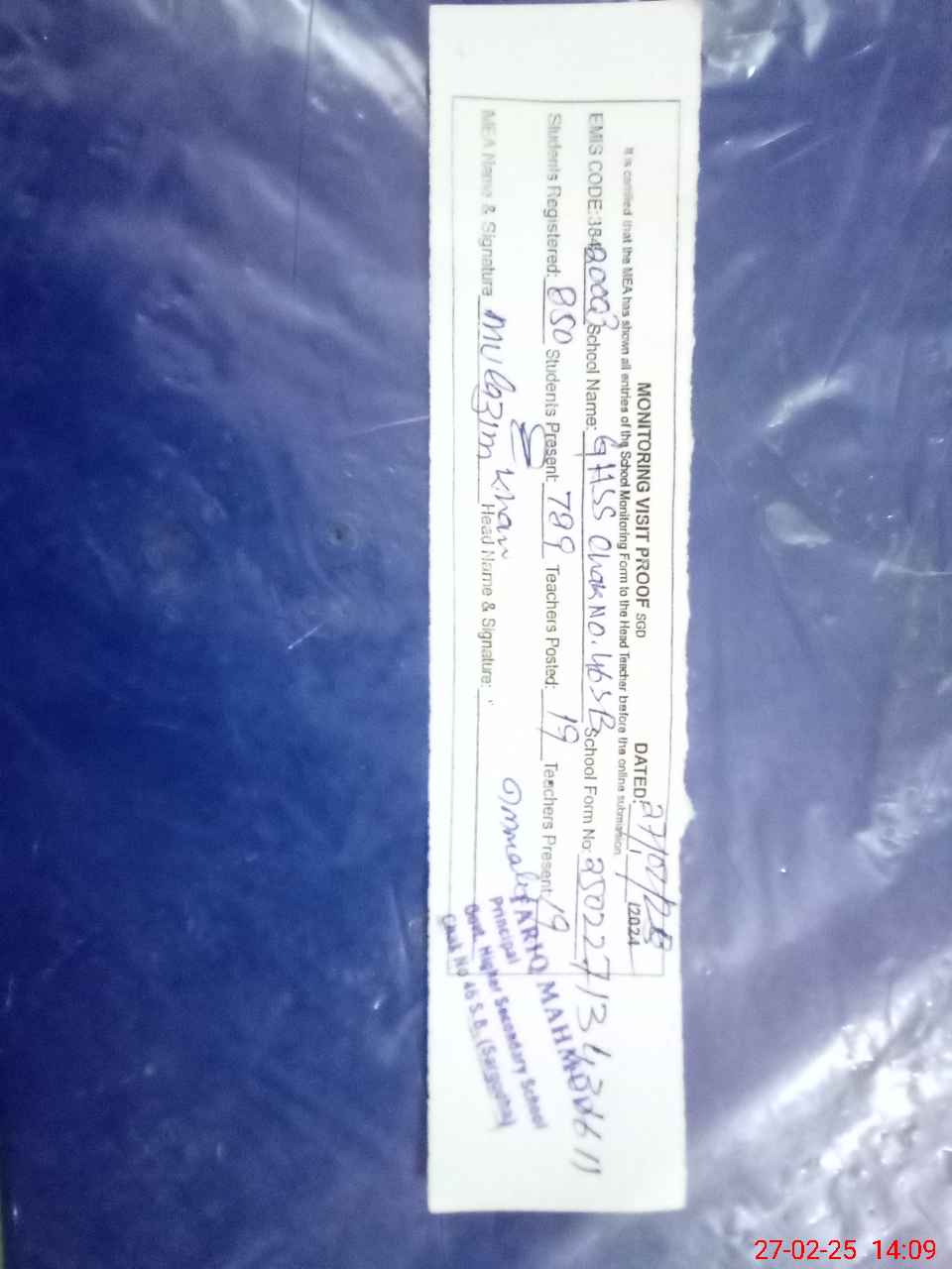 | EMIS Code: 38420003 | Name of School: GHSS CHAK NO.46 SB | |||