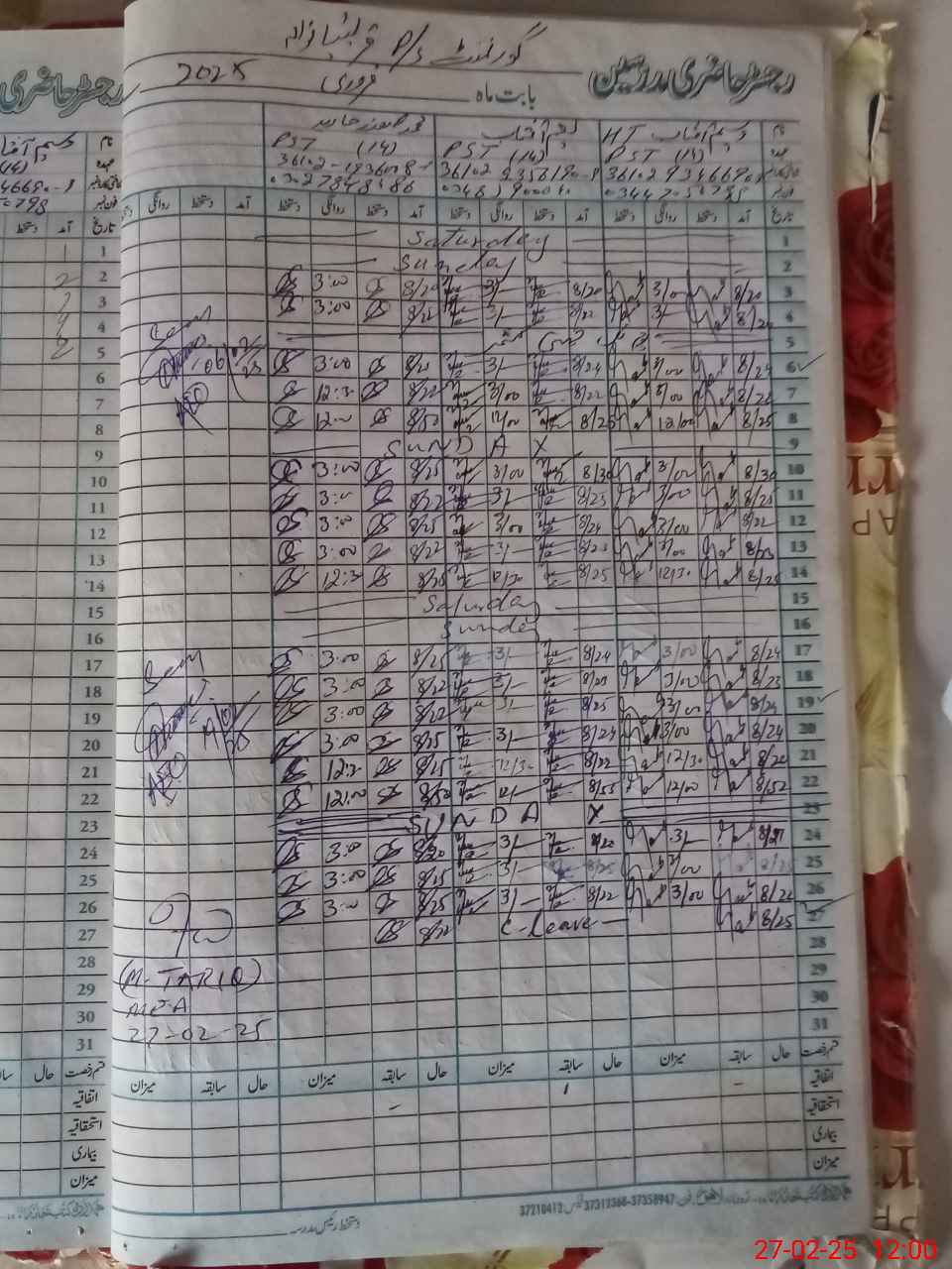 | CNIC | Full Name | Designation | R/C | Absence During Last Calender Month |