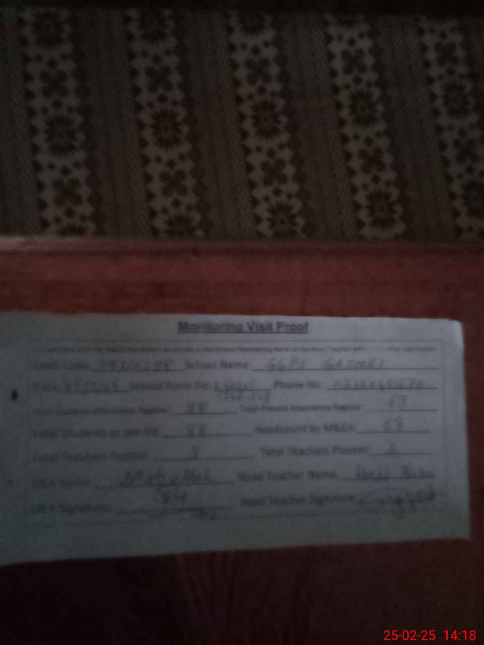 | Attendance Register | Head Teacher | MEA with School | Visit Proof |