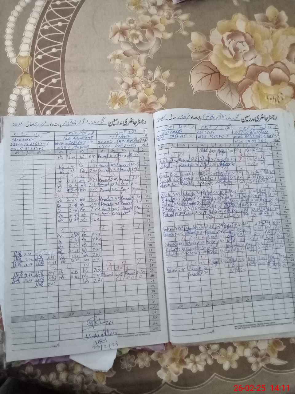 | CNIC | Full Name | Designation | R/C | Absence During Last Calender Month |