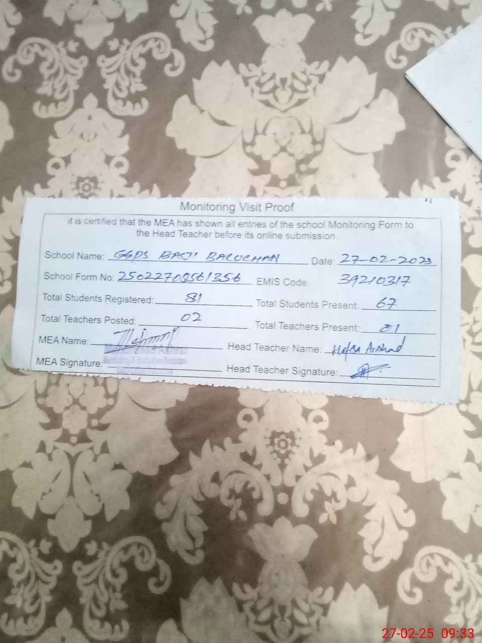 | EMIS Code: 39210317 | Name of School: GGPS BASTI BALOCHAN P/O MALKA HANS | |||