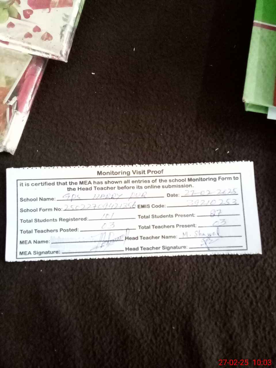 | EMIS Code: 39210253 | Name of School: GPS HARRY PUR | |||