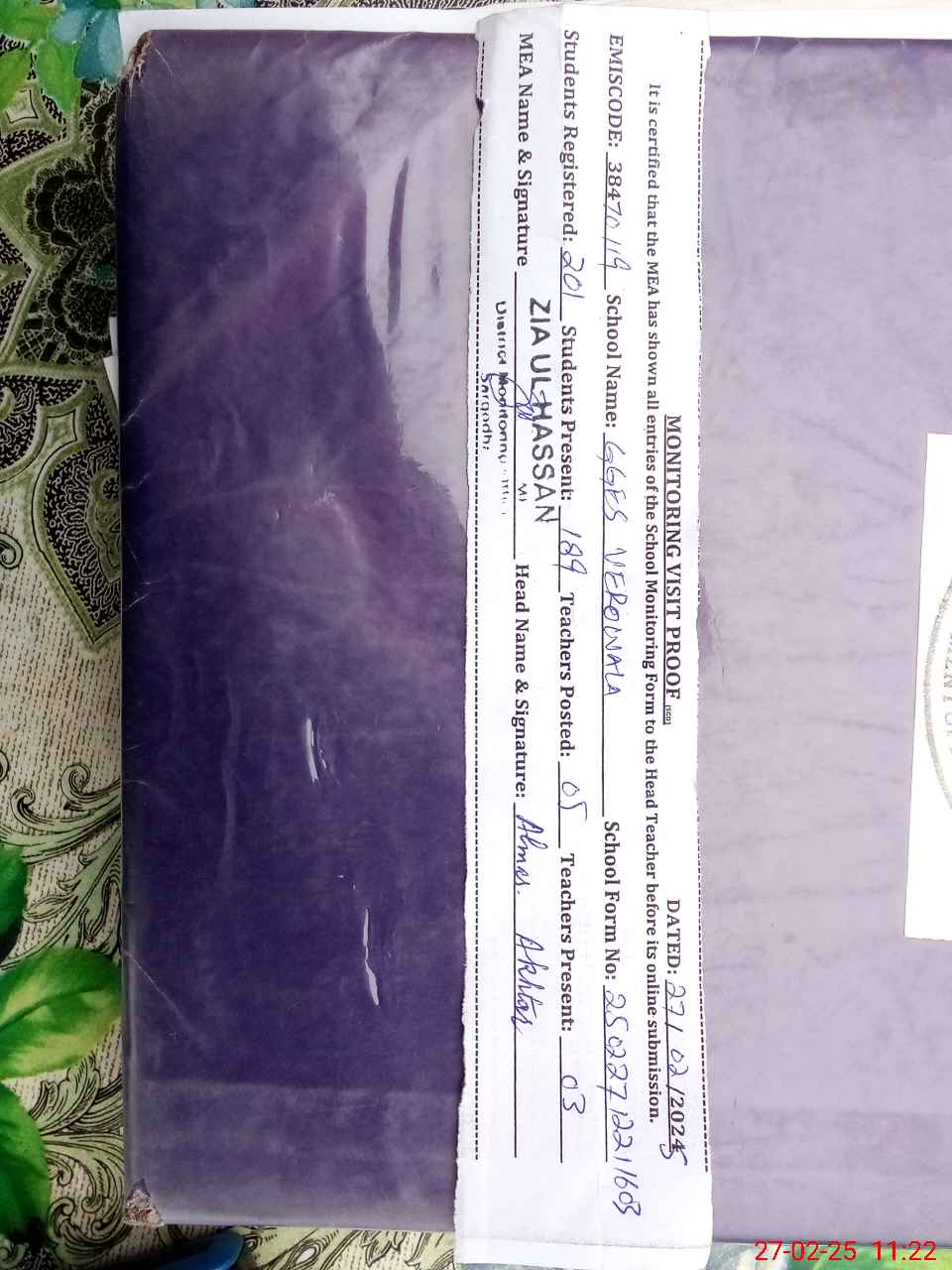 | Attendance Register | Head Teacher | MEA with School | Visit Proof |