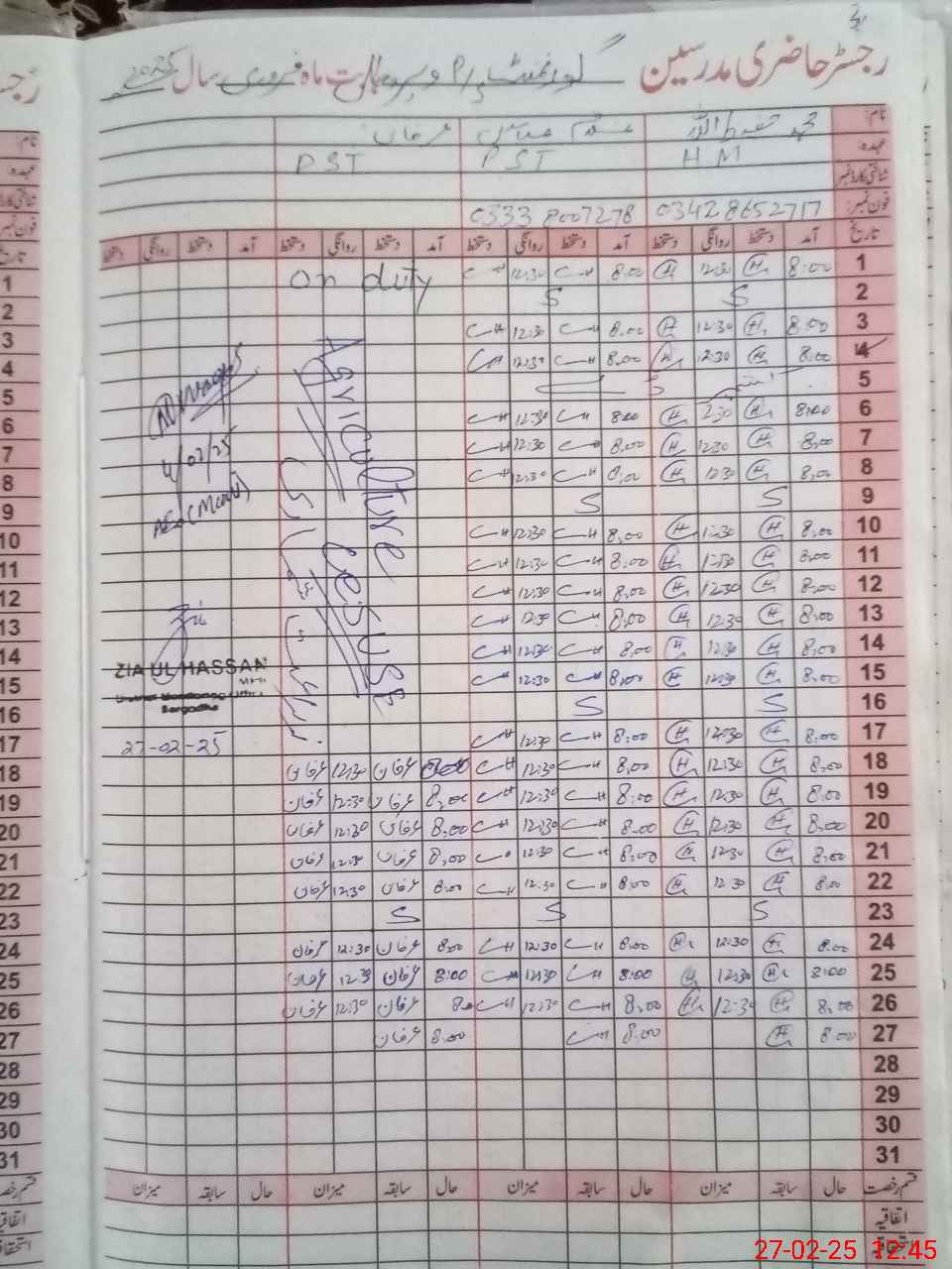 | Name: MHA**** UL**** Designation: (School Headmaster's/Headmistress's) PST Phone/Cell Number: 03**** |