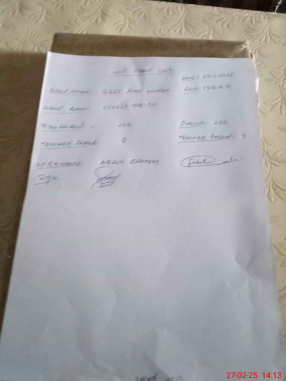| Attendance Register | Head Teacher | MEA with School | Visit Proof |