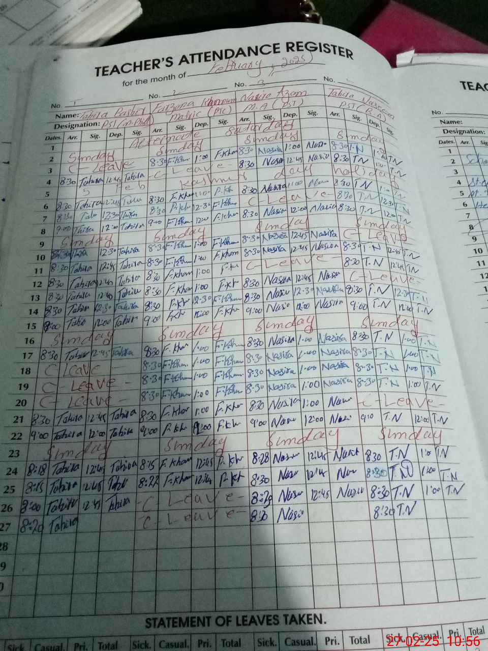| 35**** | Fa**** Kh**** | PST | Regular | 2 | 0 | 0 | 0 | 0 | 0 | 0 | 0 | 2 | Casual |