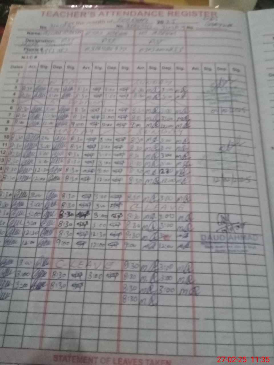 | Name: Al**** Ra**** Designation: (School Headmaster's/Headmistress's) Ese Phone/Cell Number: 03**** |