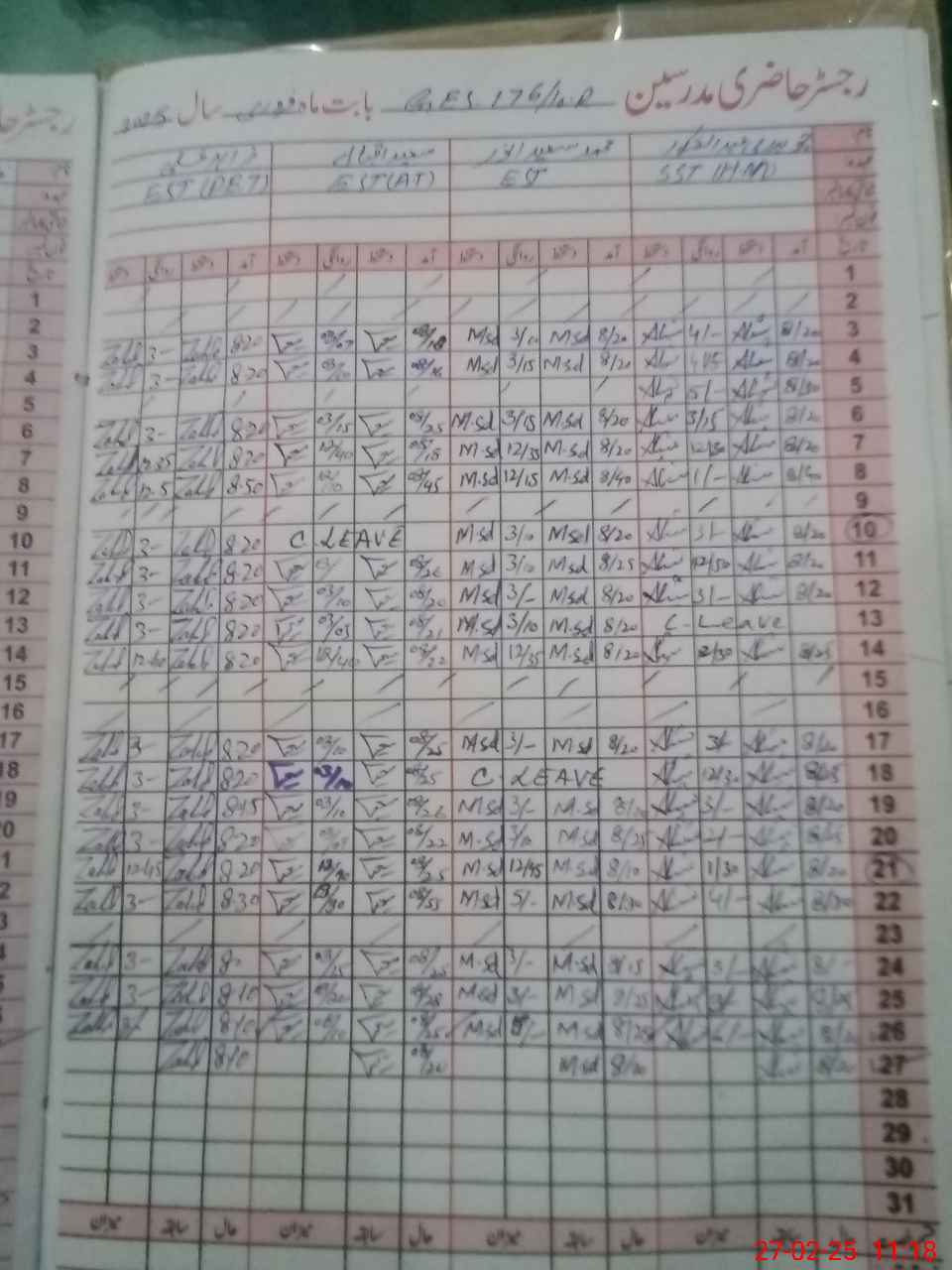 | Leave | Duty | Absent | Maternity | Medical | Ex- Pak |