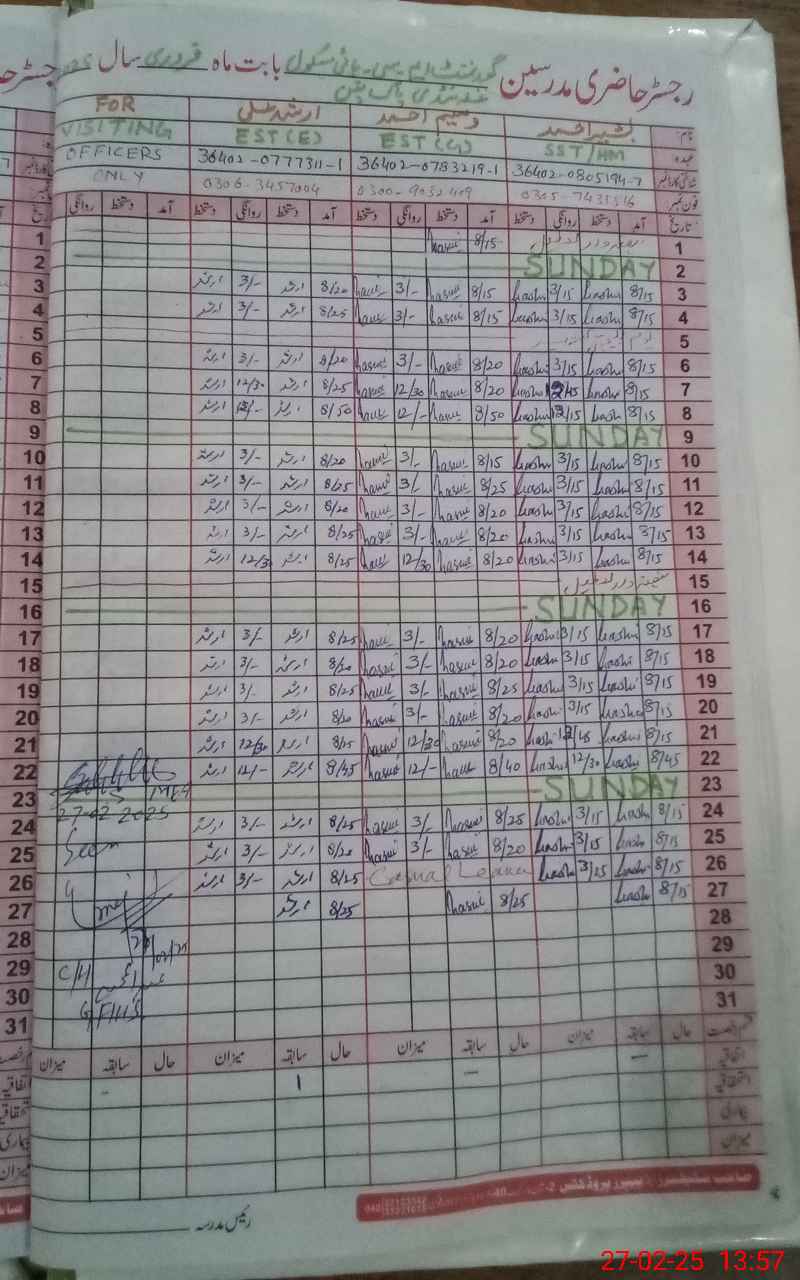 | Name: Mu**** Ar**** Designation: (School Headmaster's/Headmistress's) Head Master Phone/Cell Number: 03**** |