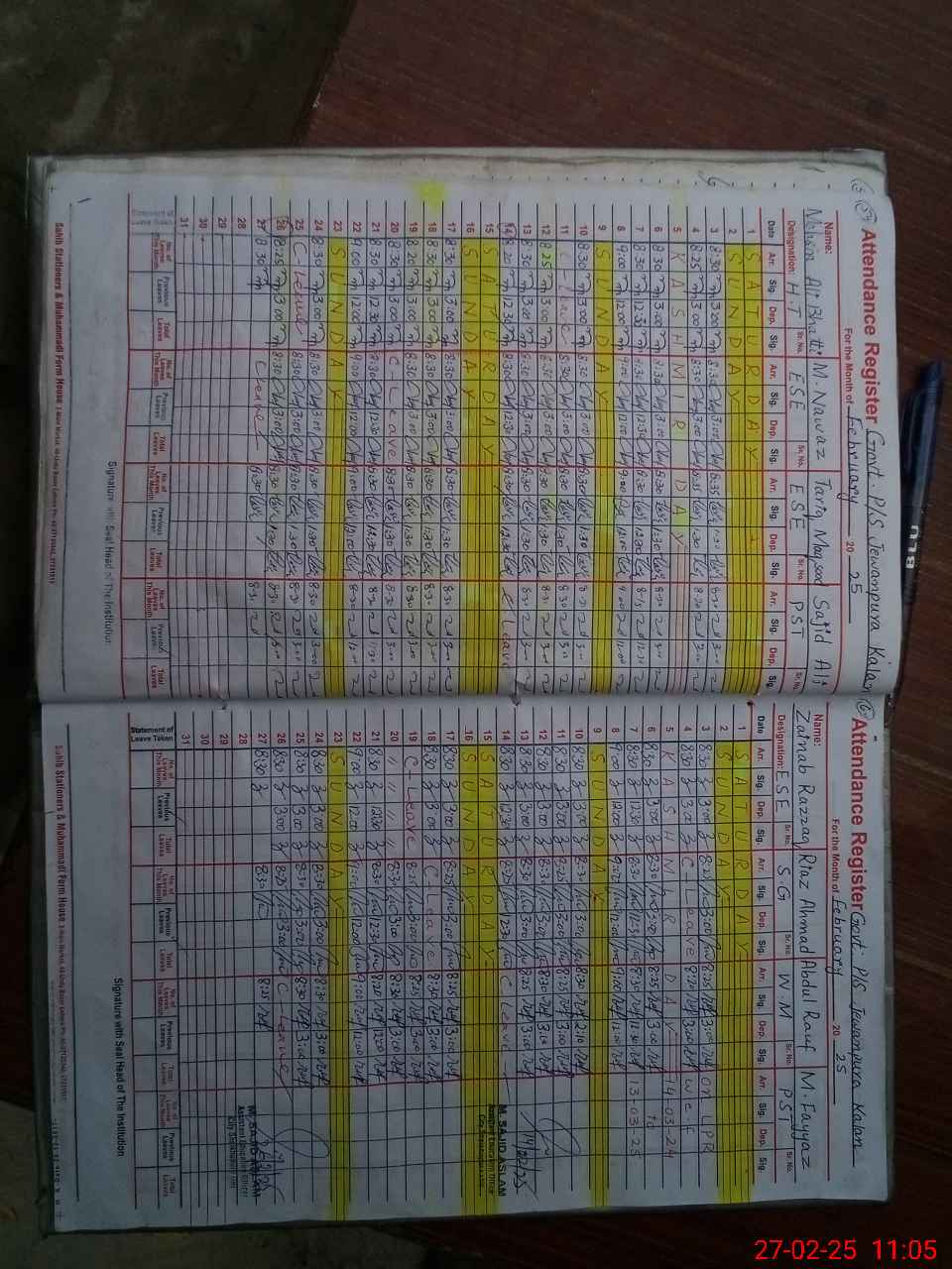 | CNIC | Full Name | Designation | R/C | Absence During Last Calender Month |