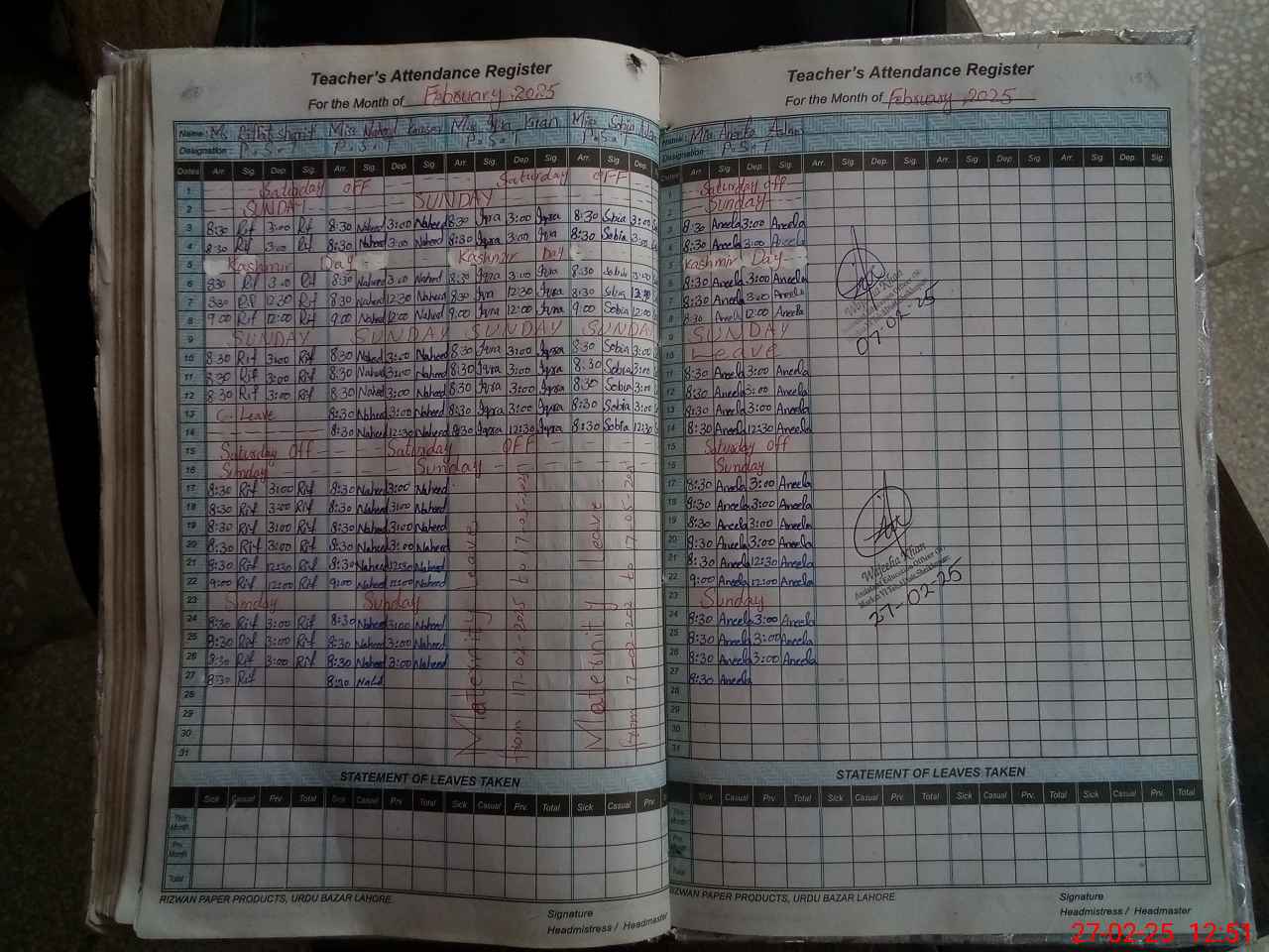 | Name: RI**** SH**** Designation: (School Headmaster's/Headmistress's) PST Phone/Cell Number: 03**** |