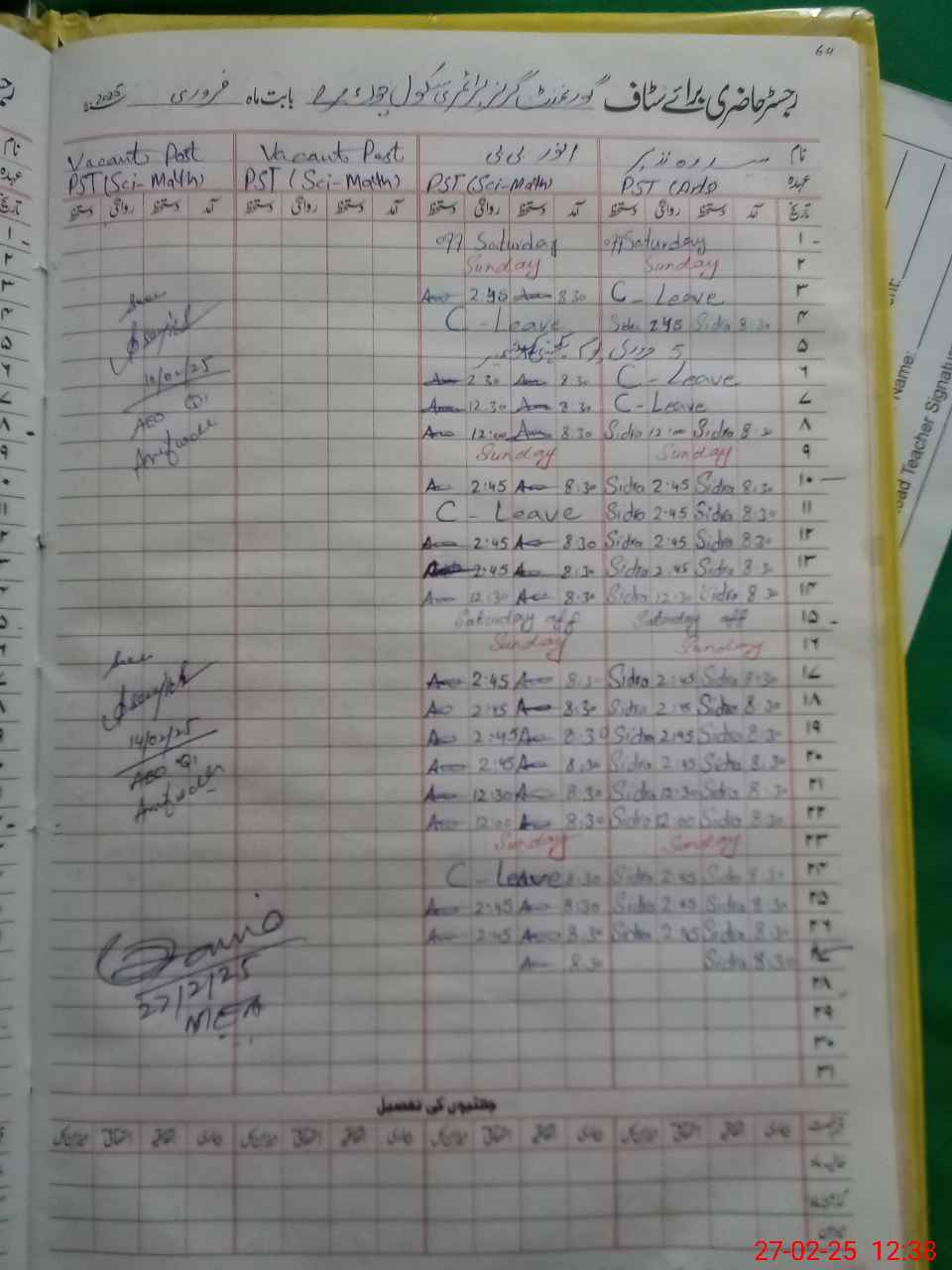 | Name: SI**** NA**** Designation: (School Headmaster's/Headmistress's) PST Phone/Cell Number: 03**** |