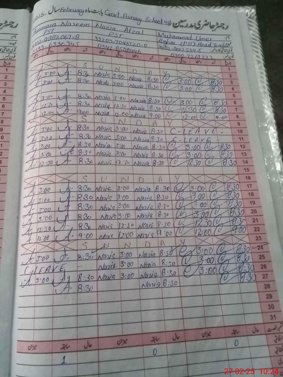 | Name: MUM**** AS**** Designation: (School Headmaster's/Headmistress's) PST Phone/Cell Number: 03**** |