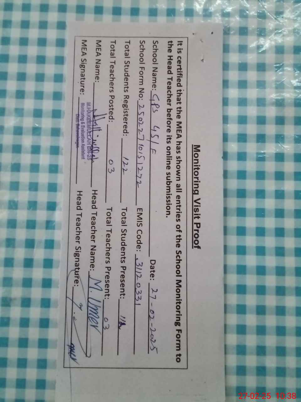 | EMIS Code: 31120331 | Name of School: GPS CHAK 45/F | |||