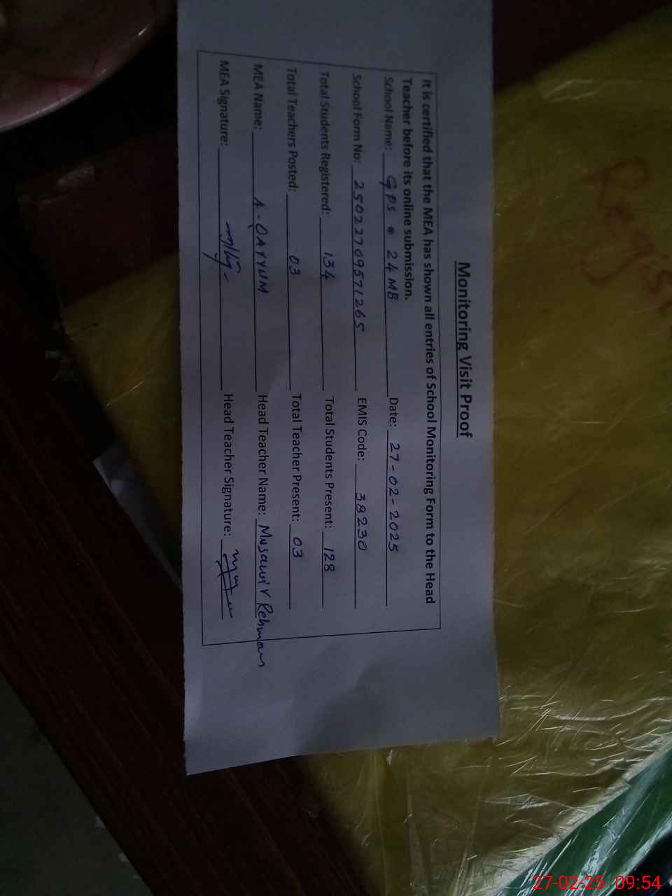 | EMIS Code: 38230476 | Name of School: GPS CHAK NO. 24 MB | |||