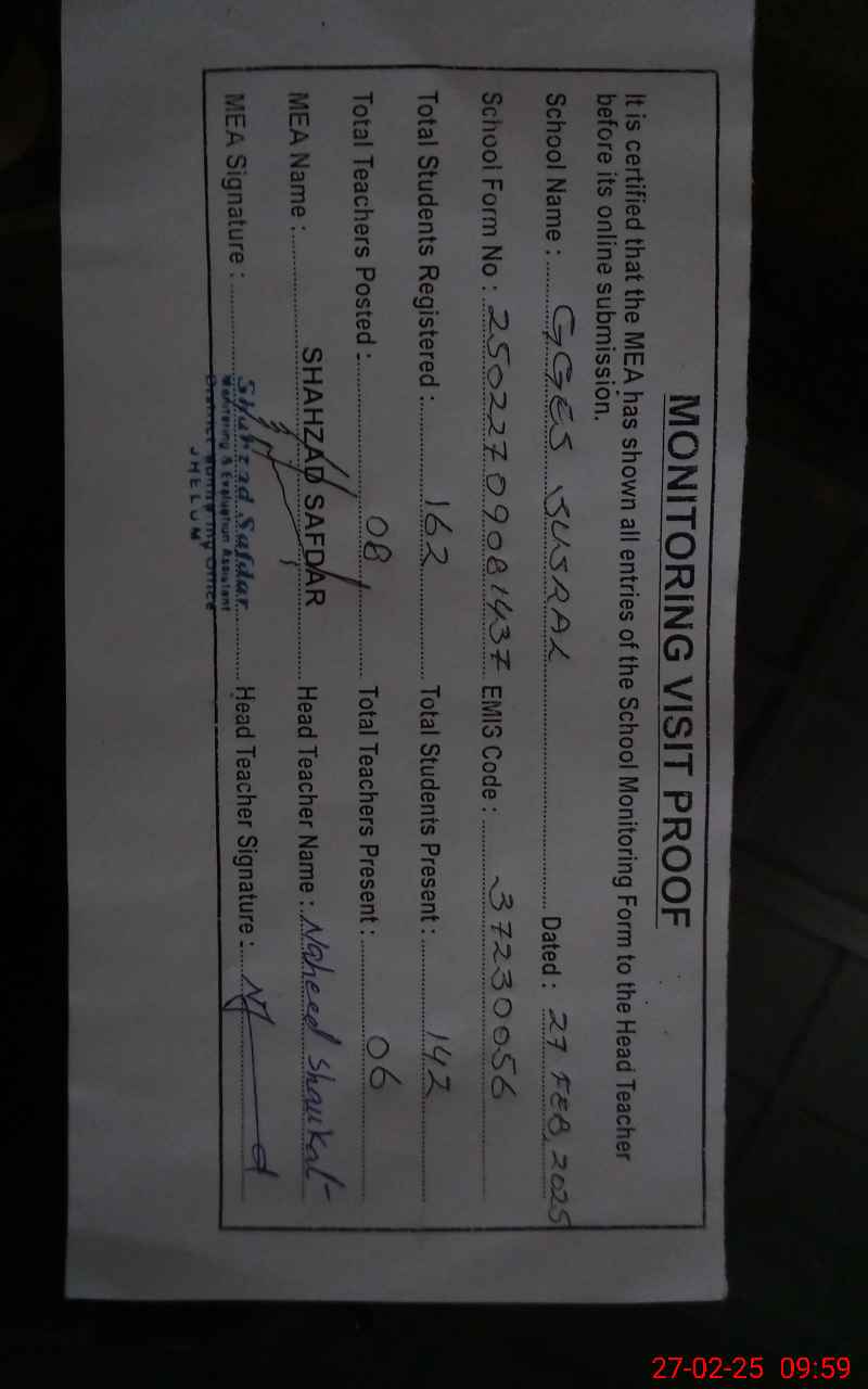 | EMIS Code: 37230056 | Name of School: GGES SUSRAL | |||