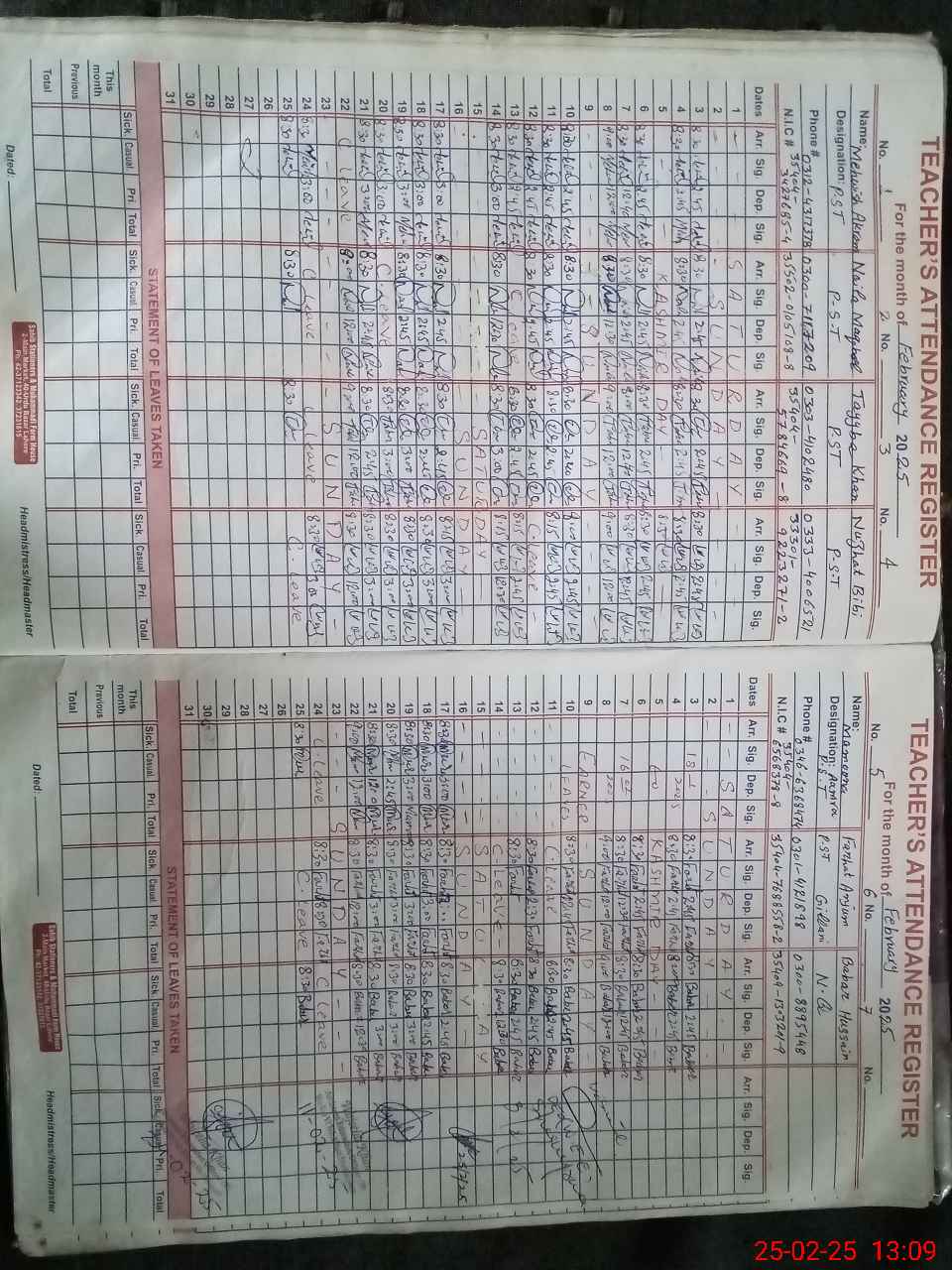 | Name: TA**** KH**** Designation: (School Headmaster's/Headmistress's) PST Phone/Cell Number: 03**** |