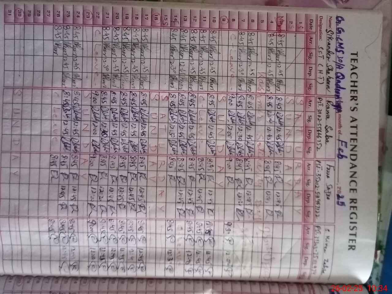 | Name: SI**** SH**** Designation: (School Headmaster's/Headmistress's) S.S.T.(GEN) Phone/Cell Number: 03**** |
