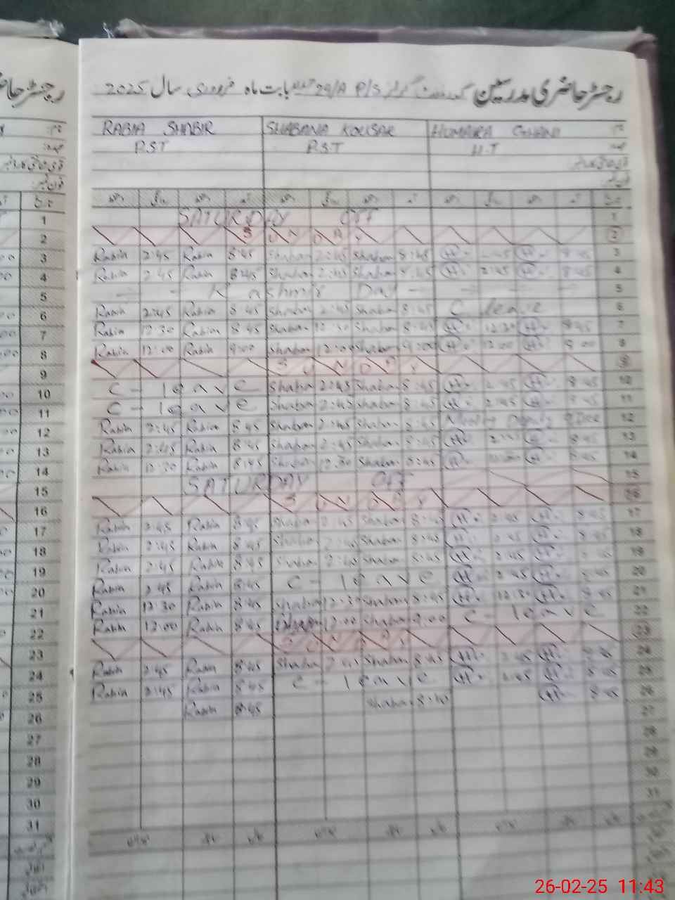 | CNIC | Full Name | Designation | R/C | Absence During Last Calender Month |