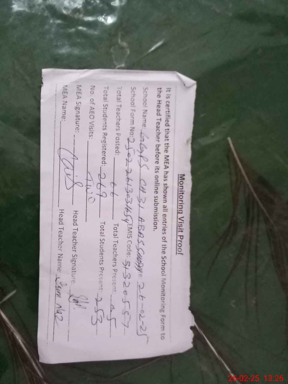 | EMIS Code: 31320557 | Name of School: GGPS CHAK 31/A ABBAS SHAH | |||
