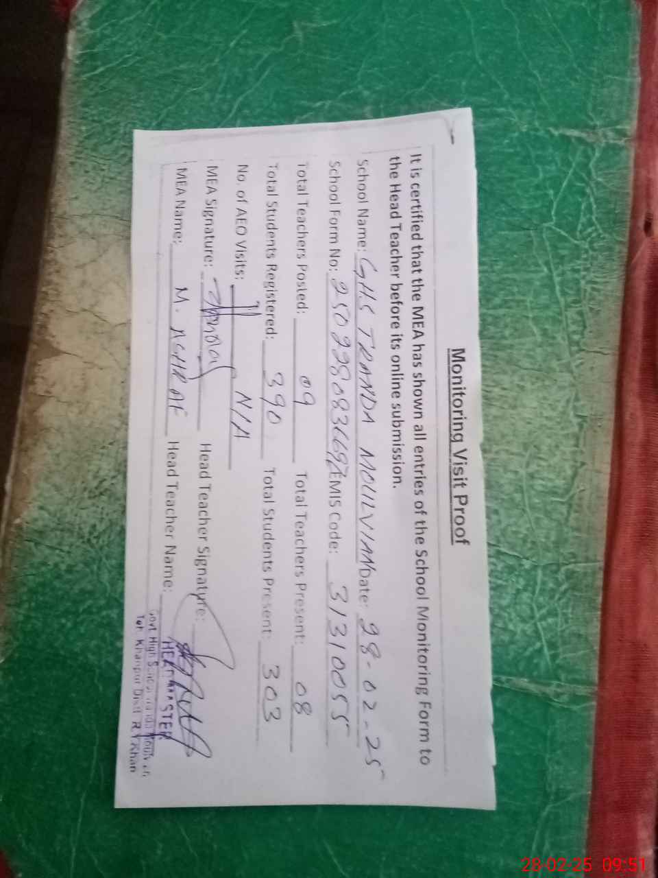 | EMIS Code: 31310055 | Name of School: GHS TARANDA MOULVIAN | |||